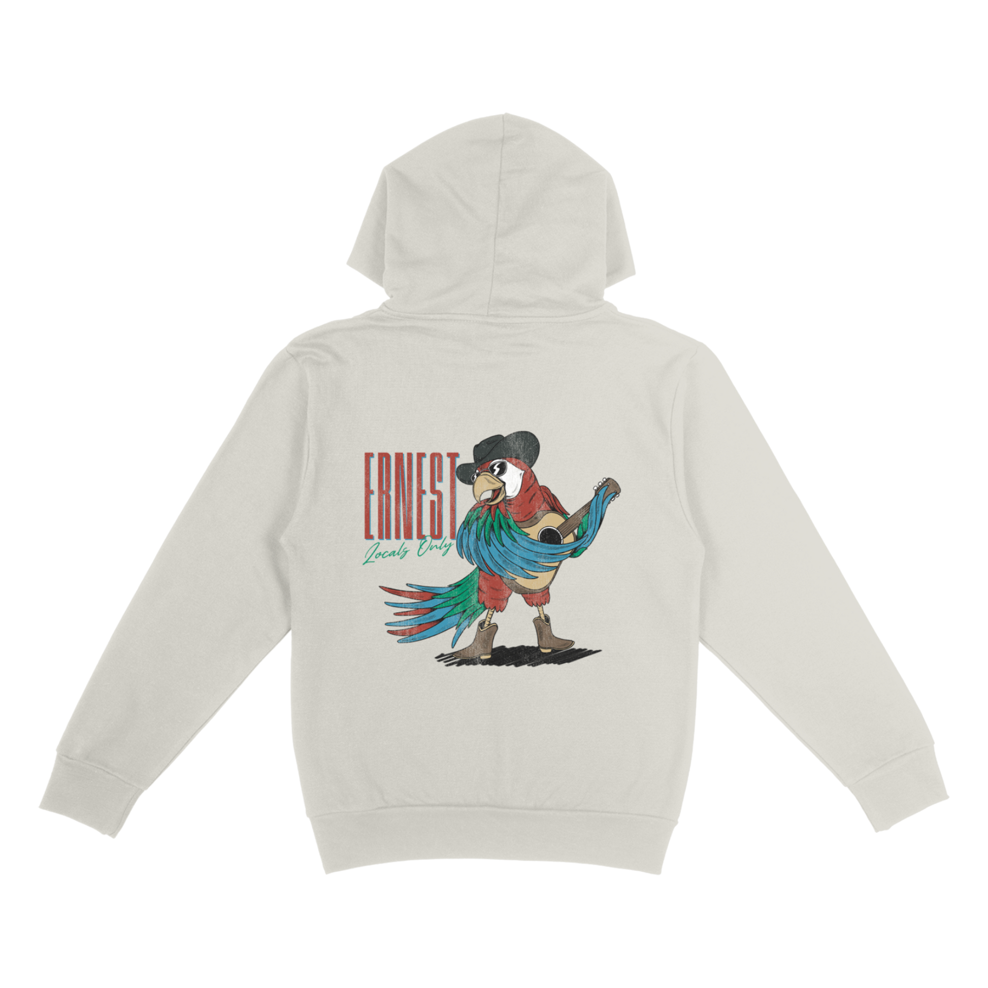 Parrot with a guitar graphic on the back
